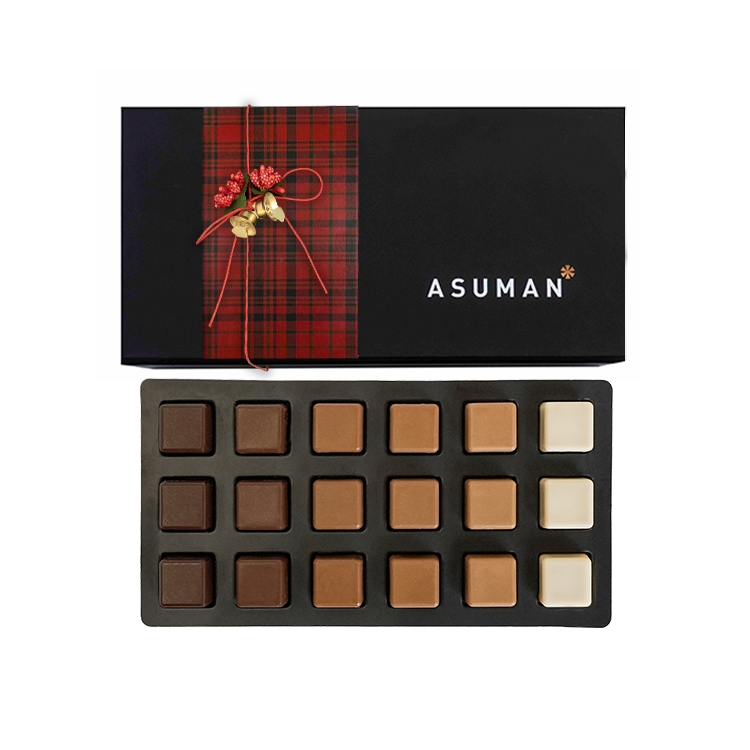 Hediyelik çikolata kutularında sona kalan bitterler elbette dikkatimizden kaçmadı. Sütlü çikolatanın bu kadar çok tercih edildiği bir dünyada, ‘neden alternatif sütlü çikolatalar üretmeyelim ki' dedik. Artık sütlü çikolata dünyasında da kakao oranlarıyla konuşabileceğimiz zamanlara geldik ve biraz acılık sevene; %56, biraz yumuşaklık sevene; %35 kakao oranlı sütlü çikolata seçenekleri sunduk ve her bir çikolatamızın içini leziz Asuman ganaj dolgularıyla zenginleştirdik.