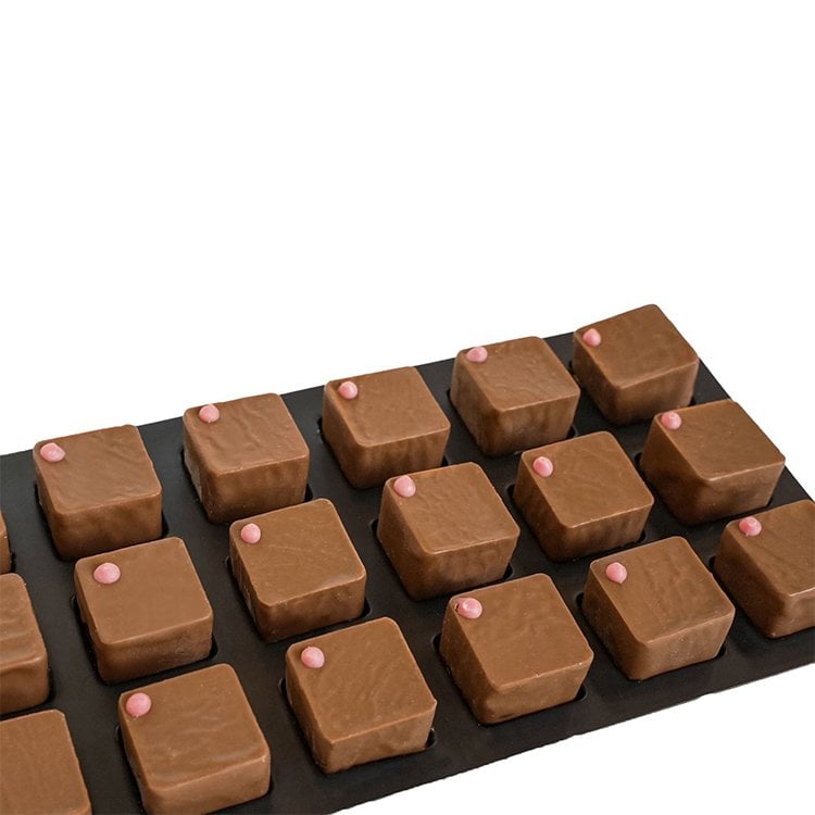 Sütlü çikolatanın içine saklanmış fındık kremalı patlayan şeker dolgusuyla her ısırıkta eğlenceli bir sürpriz yaşayacaksınız. Asuman’ın neşeli dokunuşunu hissedin!