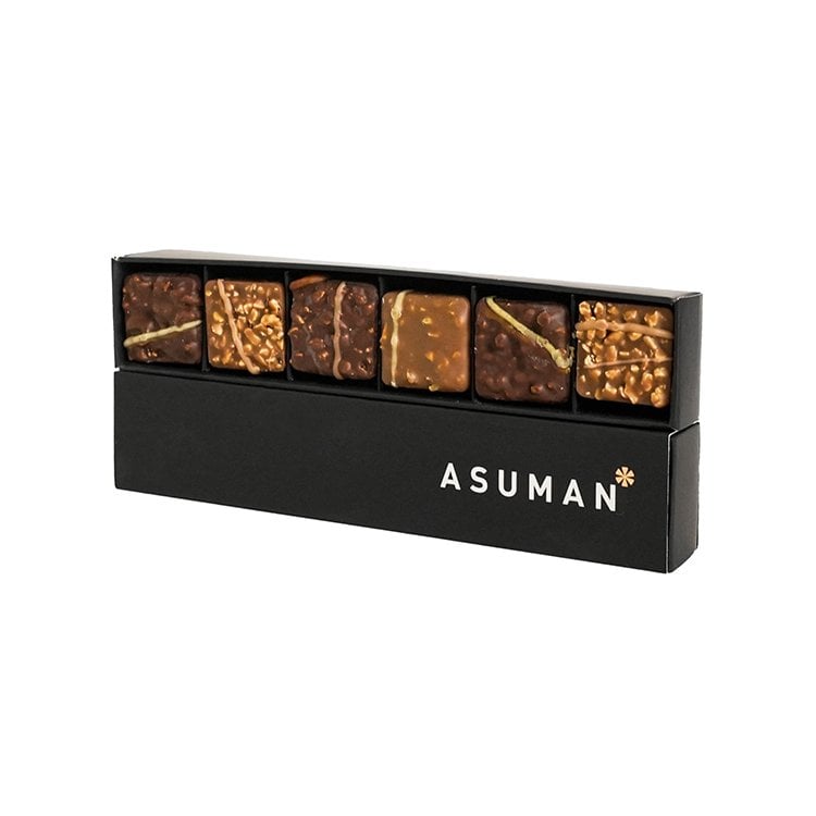 İpeksi, çıtır ve yoğun kıvamıyla içi pralin dolgulu bu enfes çikolatalar, Antep’in baklavalık fıstığı, Giresun’un fındığıyla çikolataya eşsiz bir lezzet katıyor. Dünyanın sadece 'pistachio' olarak adlandırdığı Antep fıstığına biz bendane, boz, merverdi, kırmızı iç diye ayırdık ve aromasına, hasat dönemine göre isimlendirdik keza fındıkta da aynı şansa sahiptik. İşte, en iyi kuruyemiş ve en kaliteli Belçika çikolatası "Guru Koleksiyonu"nda buluşuyor. İki sütlü, iki bitter seçeneğiyle. İçi krokan pralin dolu Guru koleksiyonu.
