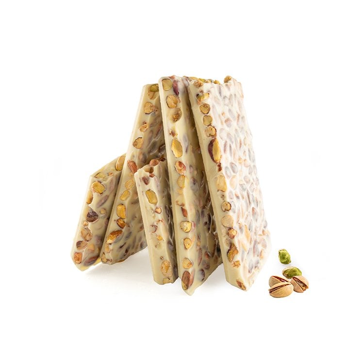 İçindekiler: Beyaz Çikolata %60(Şeker,Kakao Yağı, Süttozu,Emülgatör (Ayçiçek Lesitini), Doğal Vanilya Aroma Vericisi), A.Fıstık %40