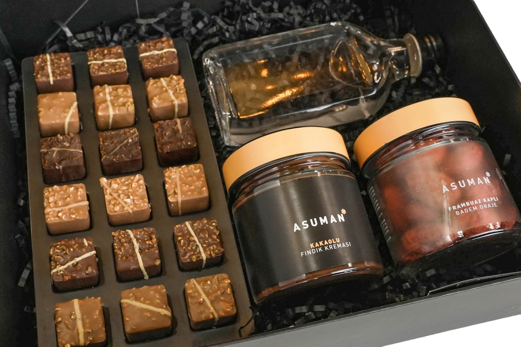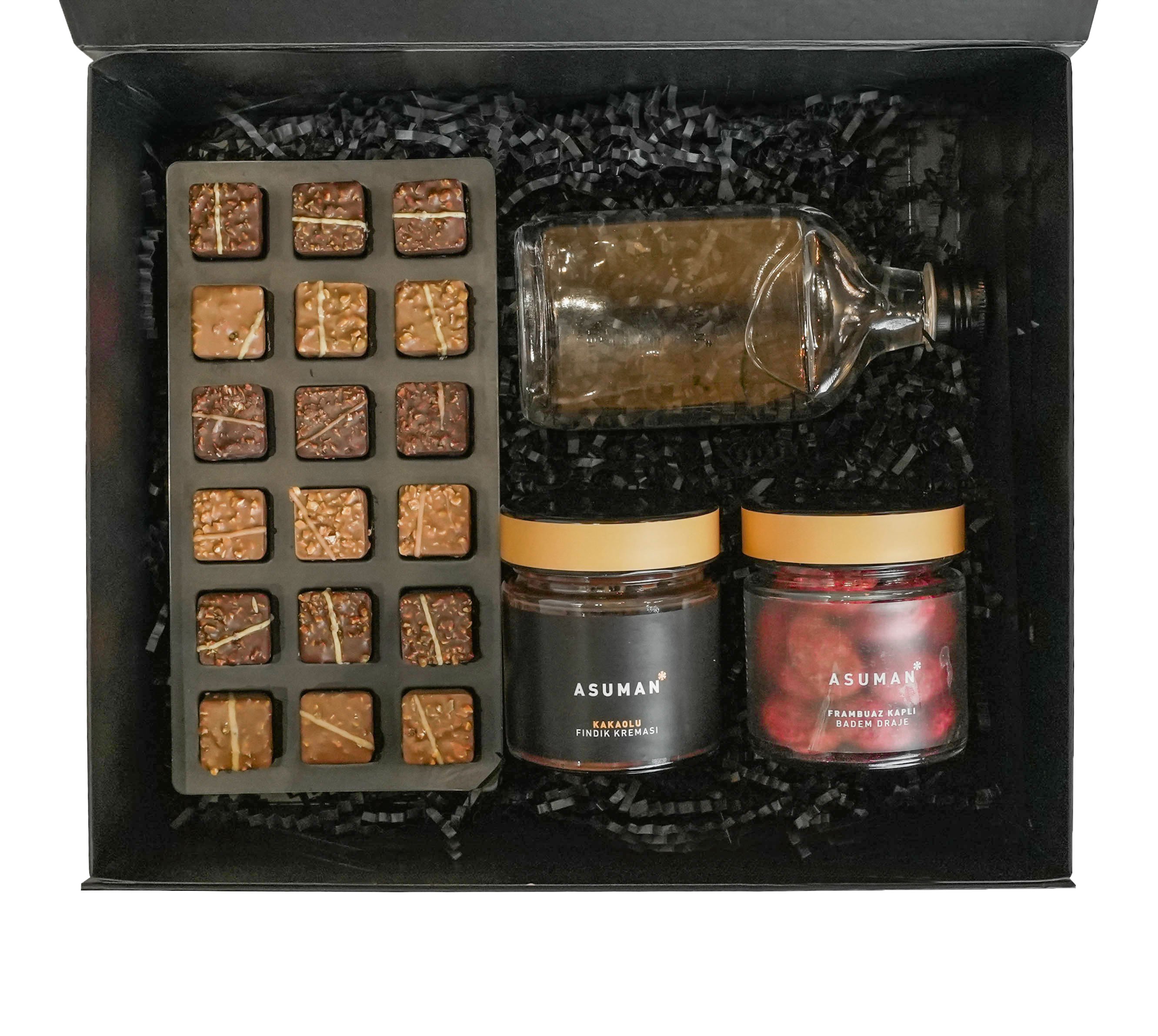 Kutu içeriği : 18'li Guru Koleksiyonu, Kakaolu Fındık Kreması, Çikolata Kolonyası 200 ML, Frambuazlı Badem Draje