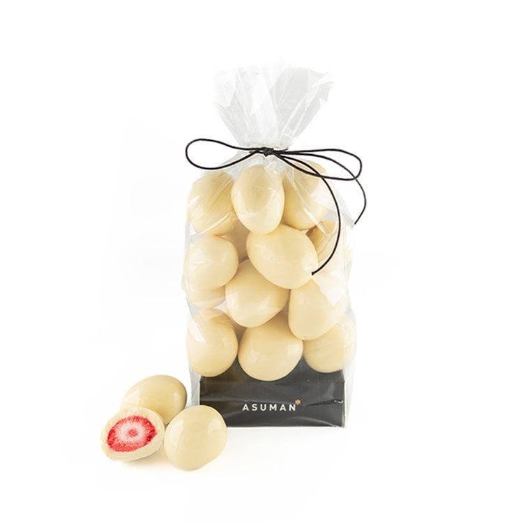 İçindekiler: Beyaz Çikolata (%92,7) ( Şeker, Süttozu,Kakao Yağı, Emülgatör (Ayçiçek Lesitini), Doğal Vanilya Aroma Vericisi), Kurutulmuş Çilek (%7) Parlatıcı (E414)