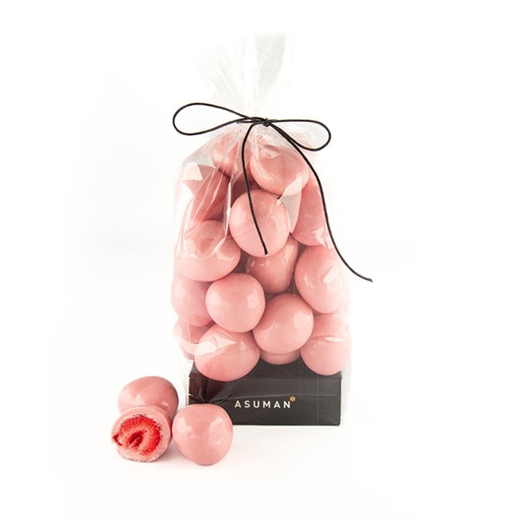 İçindekiler: Beyaz Çikolata (%92,7) ( Şeker, Süttozu,Kakao Yağı, Emülgatör (Ayçiçek Lesitini), Doğal Vanilya Aroma Vericisi), Kurutulmuş Çilek (%7), Renklendirici (E162), Parlatıcı (E414)