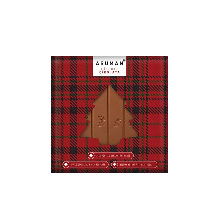 %35 Oranında Sütlü Çikolata, Silifke Yoğurt - Bursa Çilek iç dolgusu (70gr)